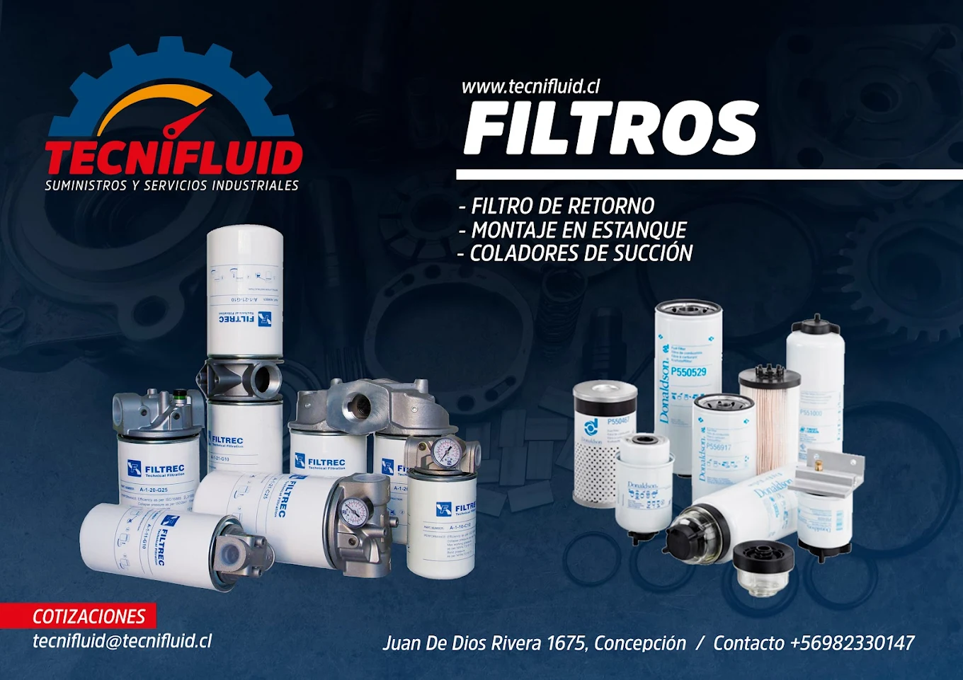 Comercial e Industrial TECNIFLUID LTDA. Venta de componentes de oleohidráulica, neumática, instrumentación, fabricación y mantención de equipos industriales. Importación de repuestos específicos y de marcas originales. Experiencia y calidad.